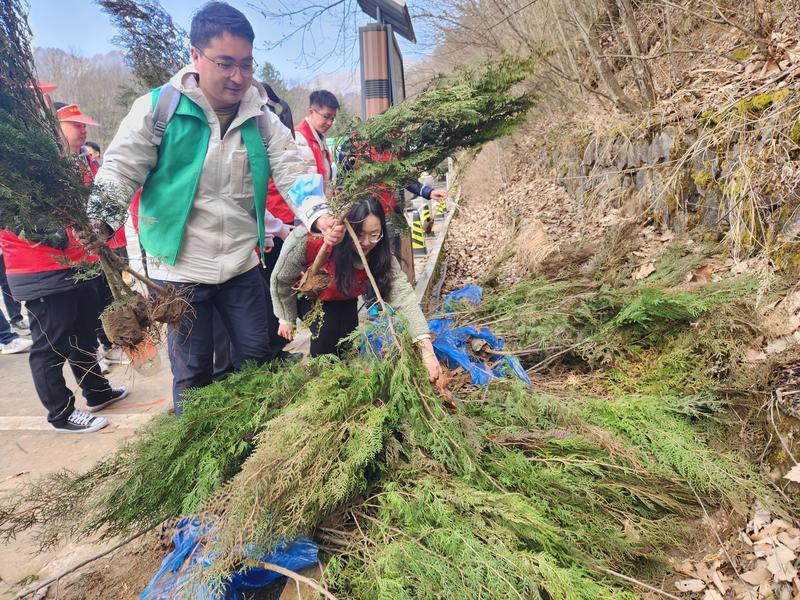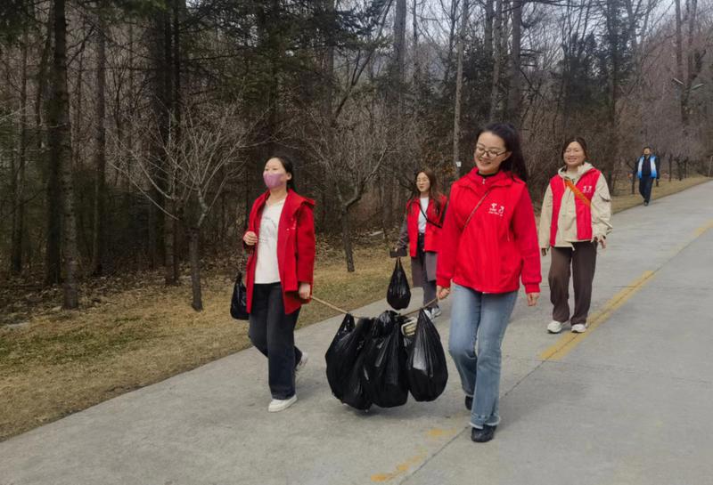 中午時分,當植樹任務完成大家稍作休息后,陜西公眾信息產(chǎn)業(yè)有限公司50多名員工又馬不停蹄地拿上垃圾袋撿拾山里的垃圾,他們心懷對大自然的敬畏之心,手持勞動工具和垃圾袋,分工協(xié)作、相互配合,井然有序地穿梭在山林里、河道旁,把游客遺落的垃圾撿拾干凈……“這些‘紅馬甲’志愿者們是公司團委的青年科技工作者,平均年齡只有28歲,平日里他們是踐行網(wǎng)絡強國和數(shù)字中國、實現(xiàn)科技自立自強征程上的‘追夢人’,今天來到山野間,他們化身為捍衛(wèi)秦嶺生態(tài)的‘清道夫’,俯拾間‘清’出一片愜意的綠水青山,舉手間綻放一抹絢麗的青春色彩?!痹摴緢F委書記王世頂說。