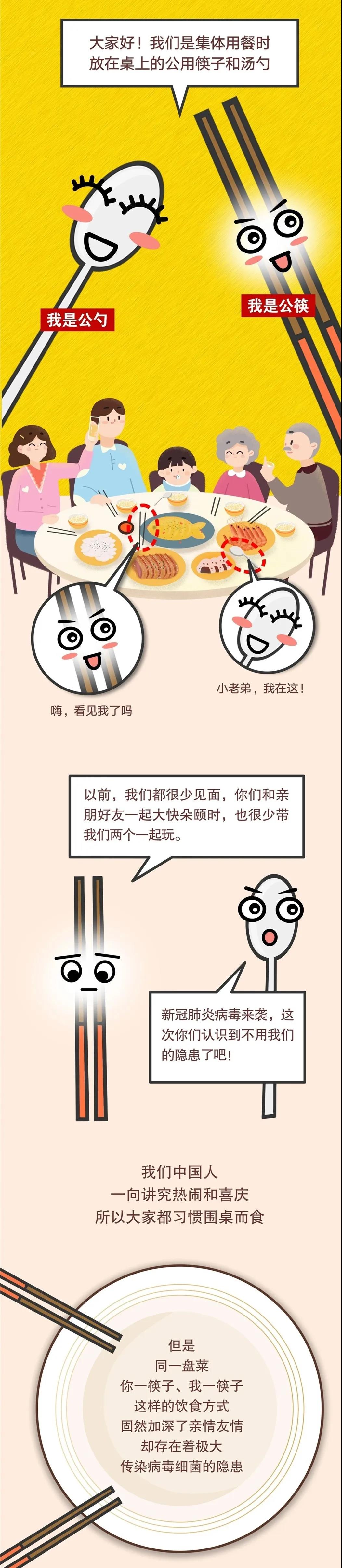 餐桌舉止非小事,一筷一勺見文明,親情友情不可少,防病除菌更重要,所以請養(yǎng)成使用公筷公勺的良好習(xí)慣!為有效防止病毒在餐桌上蔓延,讓安全、健康、文明的用餐方式,惠及每個(gè)家庭、每位居民。